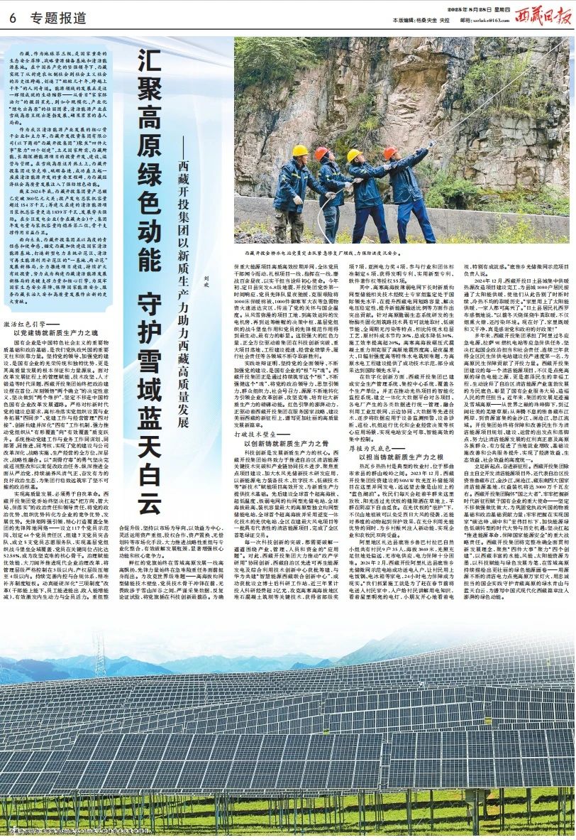8月28日,《西藏日報》以題為《匯聚高原綠色動能 守護雪域藍天白…...