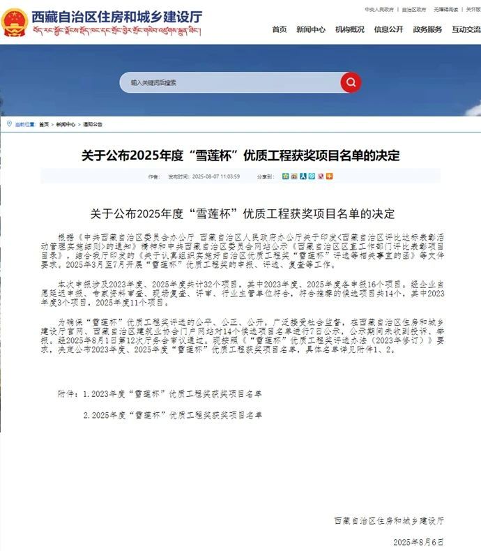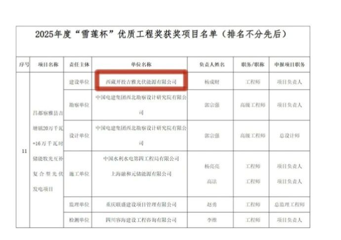 8月7日,西藏自治區(qū)住房和城鄉(xiāng)建設廳公布2025年度“雪蓮杯”優(yōu)質工程獲獎項目名單,由西藏開投吉雅光伏公司投資建設的昌都察雅縣吉塘鎮(zhèn)20萬千瓦+16萬千瓦時儲能牧光互補復合型光伏發(fā)電項目榮獲該獎項。
